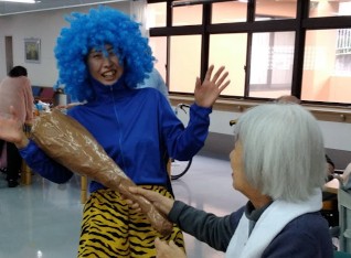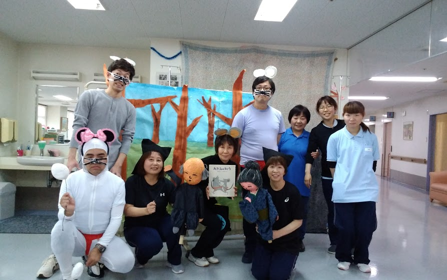 節分 職員に豆をぶつけ健康を祈願します。 |