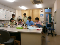 - グループ紹介: おばちゃん達と、その子ども達と同じ年代のスタッフで幅広い年齢層でTQM活動に取り組みます。
