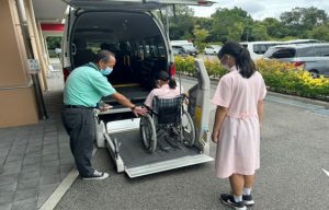 その後、実際に透析患者の看護体験として車いすを用いての送迎をはじめ