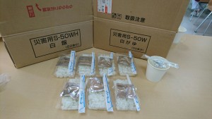 段ボール箱の中にはお弁当ケース、カップ、お箸にお玉までセットされています