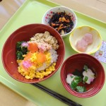 今日は和食の日です いい(11)に(2)ほんしょ(4)くで、「和食の日」だそうです メニュー 彩り野菜の混ぜご飯 さばの塩焼き 絹厚揚げのきのこ金平 清汁 おとうふしらたまみたらし 和食は栄養バランスに優れた食事 ・・・