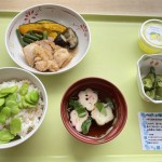 本日、3/3はひな祭りです メニュー ❁花ちらし寿司 ❁ロールキャベツのみぞれあんかけ ❁海老団子入り清汁 ❁桜抹茶プリン ・・・